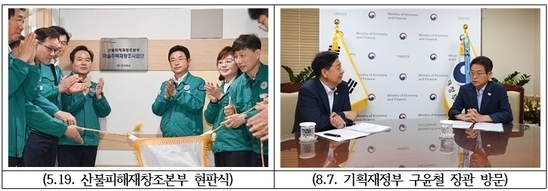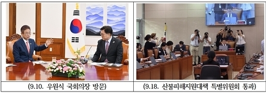 최근에는 법안심사소위의 신속한 진행으로 특별법에 대한 기대가 높아지고 있는 가운데, 9월 10일 다시 한번 국회를 방문해 우원식 국회의장과 김정호 산불특위 위원장, 여‧야 지도부를 두루 만나 남은 입법절차들도 신속하게 진행시켜 줄 것을 요청하기도 했다.