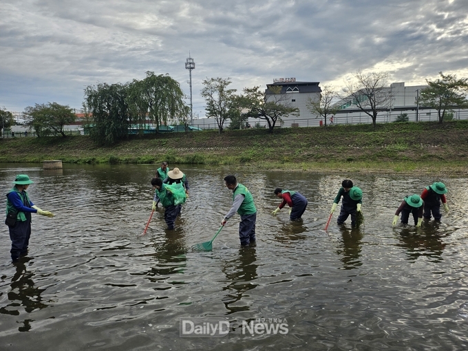 특히, 하천 내 부유 쓰레기를 제거하기 위해 일부 참여자들은 직접 물에 들어가 갈퀴 등을 활용해 수중 쓰레기까지 정리하는 등 적극적인 정화 활동을 이어갔다.