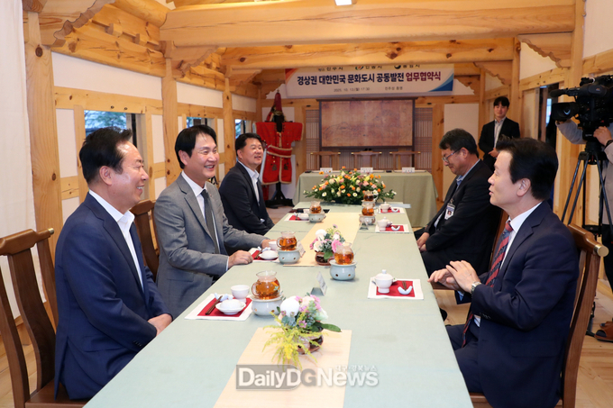 (데일리대구경북뉴스=황지현 기자)안동시는 10월 13일 진주시 진주성 내 중영에서 ‘경상권 대한민국 문화도시 공동발전을 위한 업무협약’을 체결했다.
