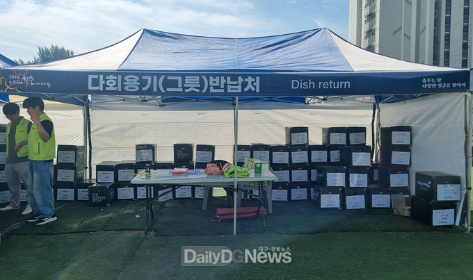 (데일리대구경북뉴스=황지현 기자)경북안동지역자활센터 ‘에코워싱 안동’이 10일간 열린 ‘2025 안동국제탈춤페스티벌’에서, 탈춤식당 및 일반식당 전 부스에 다회용기를 공급하고 다회용기 세척 업무를 전담하며 “쓰레기 없는 친환경 축제” 실현에 주도적 역할을 했다.
