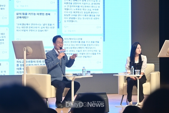 ‘이슈 톡’ 시간에는 영천고등학교 태원국 학생회장이 진로와 진학 문제를 질문하고, 청도초등학교 방장혁 교사는 디지털 대전환 시대 교육의 방향에 대해 질문하며 현장과 교육청이 함께 소통했다.