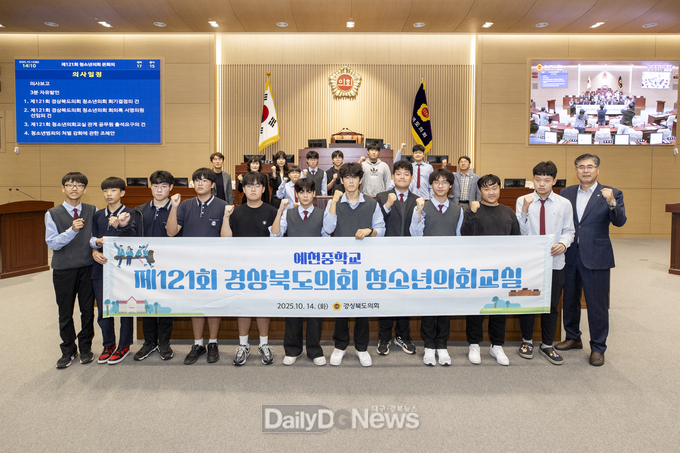 (데일리대구경북뉴스=황지현 기자)경상북도의회는 10월 14일 본회의장에서 예천중학교 학생 17명이 참여한 가운데 ‘제121회 경상북도의회 청소년의회교실’을 개최했다.