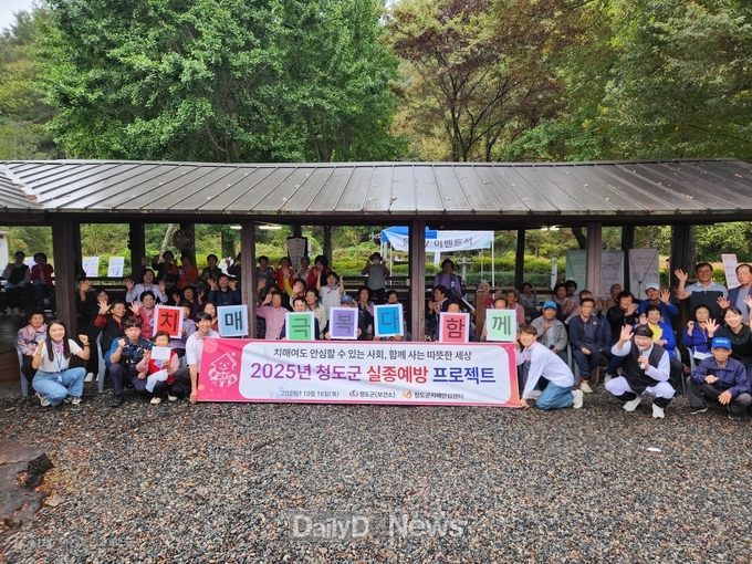 (데일리대구경북뉴스=황지현 기자)청도군(군수 김하수)은 10월 16일 오후 2시부터 치매환자와 가족의 안전을 지키고 주민과 함께하는 치매 친화적 지역사회를 만들기 위해 추진한 2025년 치매극복 ‘실종예방 프로젝트’를 성황리에 마무리했다.