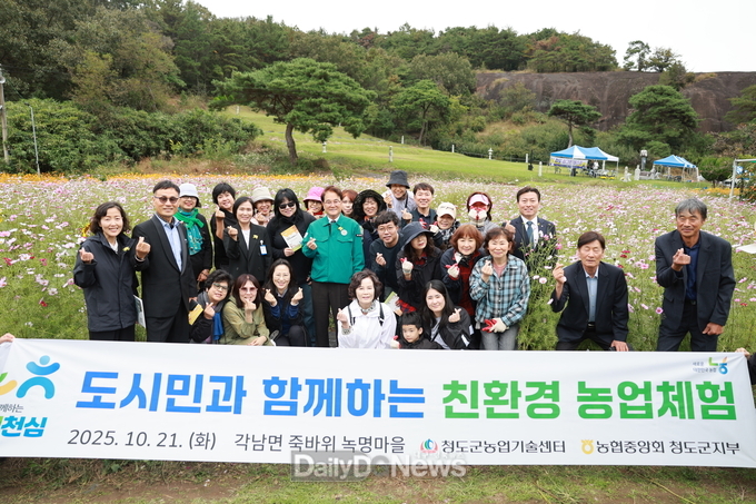 (데일리대구경북뉴스=황지현 기자)청도군(군수 김하수)은 10월 21일 각남면 녹명1리 죽바위 일원에서 친환경농산물의 안정성 및 우수성을 알리고 지역경제 활성화와 친환경농산물 소비 촉진을 위해 ‘친환경농업체험마을 행사’를 개최했다.