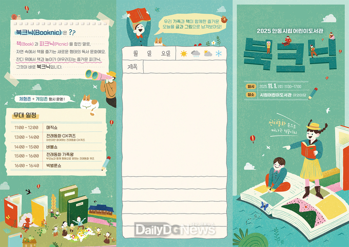 (데일리대구경북뉴스=황지현 기자)안동시립어린이도서관은 청량한 계절, 가을을 맞아 온 가족이 함께 어우러질 수 있는 책문화 축제로 ‘2025년 안동시립어린이도서관 북크닉(Book+Picnic)’행사를 오는 11월 1일 오전 11시부터 오후 5시까지 개최할 예정이다.
