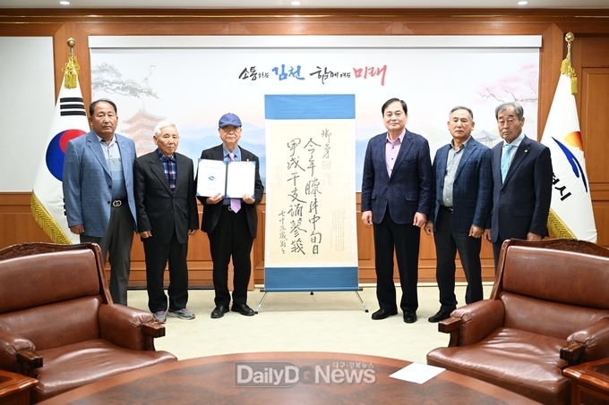 (데일리대구경북뉴스=황지현 기자)김천시(시장 배낙호)는 10월 24일, 지난 10월 16일자로 경상북도 문화유산자료 제179호로 지정된 김천 진주강씨 학암종가 소장 고문헌 43점에 대한 문화유산자료 지정서를 전달했다.