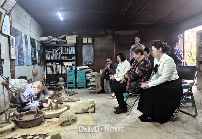 다음으로 경주민속공예촌을 방문한 게오르기에바 총재는 도예 명장이 직접 시연하는 토기 제작을 관람하며 토기 성형에서부터 소성까지 신라 전통 토기의 제작 과정을 흥미롭게 지켜본 후 명장이 제작한 전통 토기 작품을 감상했다.