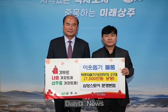 (데일리대구경북뉴스=황지현 기자)삼성스토어 문경본점(대표 김종원)은 상주실버빌노인요양원을 비롯한 관내 노인장기요양기관 21개소에 척추의료기기 21대를 전달했다.