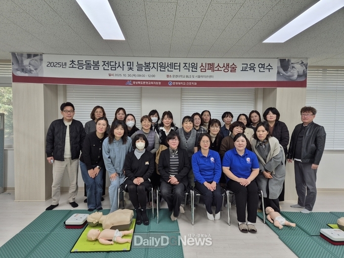 (데일리대구경북뉴스=황지현 기자)문경대학교(총장 신영국) 간호학과(학과장 윤영주)는 10월 30일, 지역사회–간호학과 연계 협력 프로그램의 일환으로 문경시교육지원청 소속 초등 돌봄 전담사와 늘봄지원센터 직원을 대상으로 심폐소생술(CPR) 및 응급처치 교육을 실시했다.
