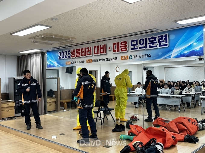 (데일리대구경북뉴스=황지현 기자)예천군(군수 김학동)은 11월 6일, 오전 11시부터 예천군보건소 건강증진관 에서 ‘2025년 생물테러 대비·대응 모의훈련’을 실시했다.