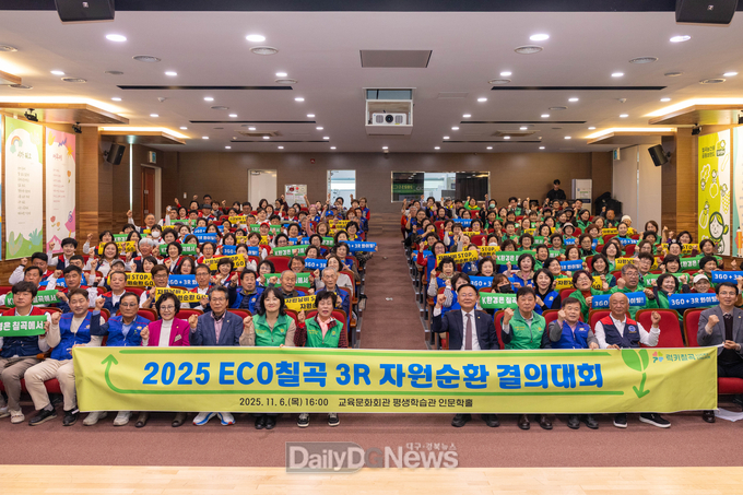 (데일리대구경북뉴스=황지현 기자)칠곡군은 11월 6일 교육문화회관 평생학습관 인문학홀에서 ‘2025 ECO칠곡 3R 자원순환 결의대회’를 개최했다.