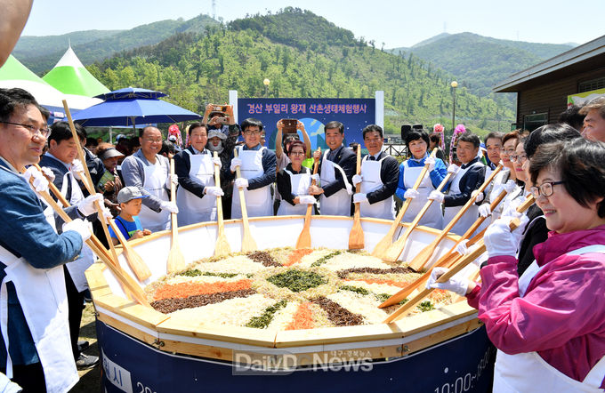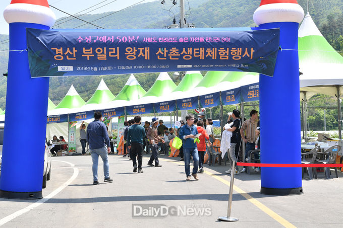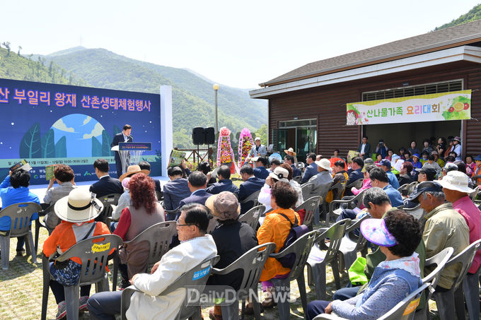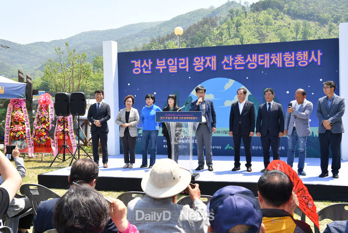 (데일리대구경북뉴스=황지현 기자)경산시는 지역관광 활성화를 위해 5월 11일 오전 용성면 부일리 일원에서 경북도의원을 비롯한 경산시의원, 지역 단체장들이 참석한 가운데 올해 첫 발걸음을 내딛는 ‘2019 경산 부일리 왕재 산촌생태체험 행사’개막식을 가졌다.
