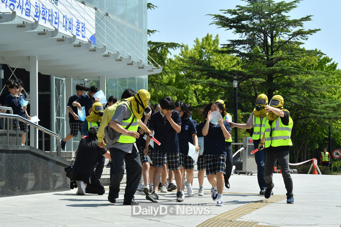 한편, 부대행사로는 경산시장과 기관·단체장이 참여한 가운데 소화기 사용 시범 시간을 갖고, 사동중학교 학생들을 포함한 시민·단체가 방독면 착용 체험과 심폐소생술 시연을 함께 참여했다.