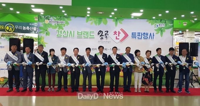 18일 오후 1시30분 진행한 특판행사 프로모션에서는 최영조 경산시장과 강수명 경산시의회 의장을 비롯해 시의원, 그리고 농협경산시지부와 읍면농협, 한국농업경영인 경산시연합회 등 관계자 약 30여 명이 참석해 옹골찬 브랜드 홍보 퍼포먼스와 경산대표과일 홍보시식행사 및 사은품 증정행사, 1+1이벤트 등 다양한 프로그램을 통해 지역의 우수한 농산물을 홍보했다고 전했다.