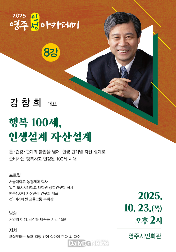 김호정 선비인재양성과장은 “이번 강연은 재무적 안정뿐만 아니라 심리적·사회적 행복까지 아우르는 통합적 인생 설계의 중요성을 되새기는 시간이 될 것”이라며, “많은 시민들이 함께 공감하고 실질적인 지혜를 얻어가길 바란다”고 말했다.