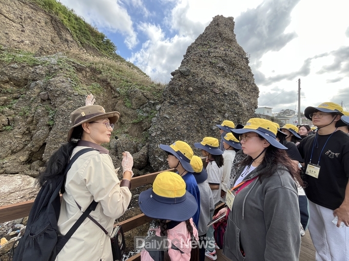 경주 코오롱호텔에서 열린 발대식을 시작으로 △경주 골굴암과 양남 주상절리 탐방 △포항 흰디기 및 여남동 화석산지 지질탐험 △영덕 해맞이공원, 죽도산, 메타세콰이어 숲 트레킹 △울진 왕피천공원 및 성류굴 탐방 등을 포함해 전 일정은 전문 해설사와 함께하는 체험 프로그램으로 운영됐다.