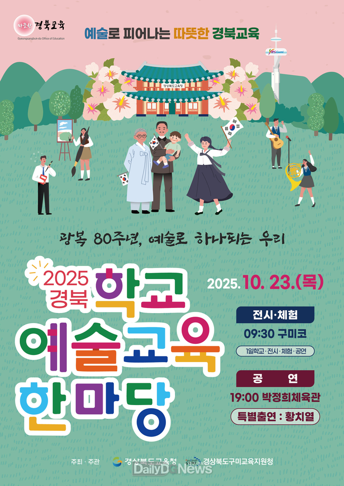 (데일리대구경북뉴스=황지현 기자)경북교육청(교육감 임종식)은 10월 23일 구미시에 있는 구미코와 박정희체육관에서 ‘2025 경북 학교예술교육한마당’을 개최했다.