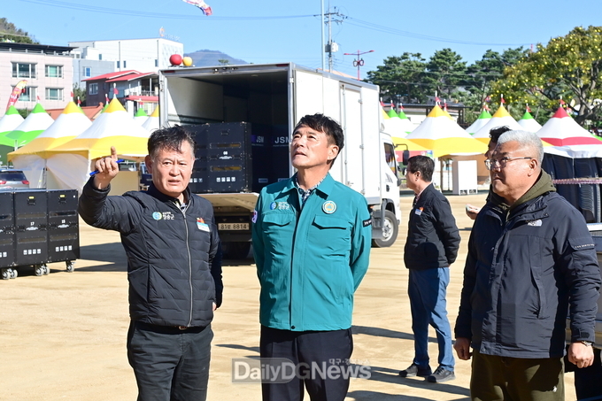 윤 군수는 이날 현장에서 직접 유관기관 점검자와 함께 행사장 내 가설건축물, 야외무대, 조형물을 점검하고 경찰, 소방, 가스, 전기 분야별로 안전 위해 요소가 없는지 꼼꼼히 확인하였으며, 관람객 입장에서 동선과 부스 간 배치 형태까지 세밀하게 점검했다.