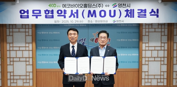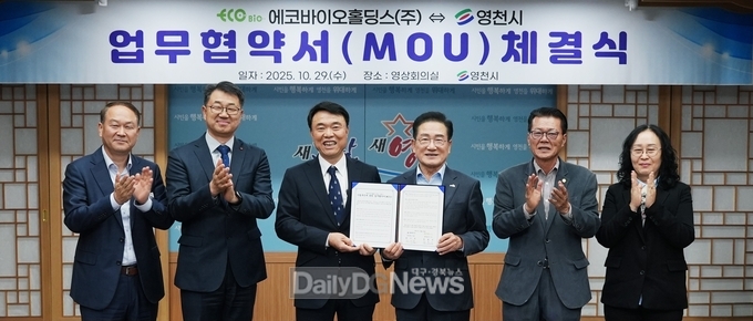 (데일리대구경북뉴스=양승미 기자)=영천시는 29일 시청 영상회의실에서 최기문 시장, 송효순 에코바이오홀딩스㈜ 대표 등 관계자들이 참석한 가운데 ‘바이오가스 기반 청정수소 생산 통합사업’에 관한 업무협약(MOU)을 체결했다.