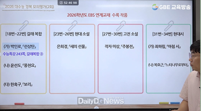 (데일리대구경북뉴스=황지현 기자)경북교육청(교육감 임종식)은 2026학년도 대학수학능력시험을 3주 앞두고 수험생들의 실질적인 마무리 학습을 돕기 위해 △마무리 학습 전략 안내 △경북 자체 제작 수능 모의평가(2회) 실시 △도내 우수 교사 온라인 강의 등으로 구성된 ‘수능 마무리 학습 프로젝트’를 지원한다.