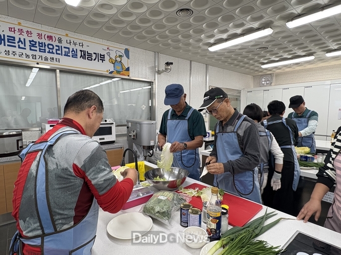 (데일리대구경북뉴스=신명곤 기자)성주군은 우리음식연구회(회장 이계자)는 재능기부로 어르신들의 건강한 식생활 실천과 자립적인 식사 준비 능력 향상을 위해 10월 30일 농업기술센터 조리교육장에서 수륜면 노인회 11명을 대상으로 ‘어르신 혼밥요리교실’ 개강식을 가졌다.