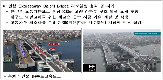 한국도로공사 관계자는 “구조물 유지관리를 넘어 노후 교량 리모델링을 통해 미래 세대를 위한 지속가능한 인프라 구축에 기여할 것”이라며, “노후 구조물 리모델링 분야의 기술적 교두보를 마련하여 세계 최고 수준의 고속도로 구조물 유지관리 기술을 보유할 수 있도록 노력하겠다”고 말했다.