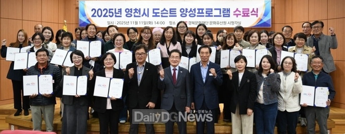 이번 프로그램은 2026년 개관을 앞둔 영천시립박물관의 도슨트를 양성하기 위해 마련됐다. 지난 9월 2일 개강 이후 총 9회에 걸쳐 진행됐으며, 전체 수강생 70명 중 90%에 해당하는 55명이 수료했다.