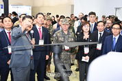 (데일리대구경북뉴스=김형만 기자)2025년도 항공방위물류박람회(2025 GADLEX)가 9월 24일부터 3일간 경북 구미시 구미컨벤션센터(구미코)에서 개막했다. 국내외 항공·방위·물류산업의 최신 기술과 비전을 한자리에서 선보이는 이번 박람회는 경상북도, 구미시, 육군 2작전 사령부에서 공동주최하고, 한국우주항공산업협회에서 주관하며, 국방부․산업통상자원부․국토교통부․방위사업청․공군 등이 후원한다. 이날 개막식에 앞서 경상북도와 구미시, 한국방위산업진흥회는 방위산업 육성을 위한 업무협약을 체결했다. 세 기관은 기업 교육 지원을 통한 전문 인력 양성, 공동 교육·연구·정보 교류, 수출 진흥과 국제 협력 등 다양한 분야에서 협력해 지역 기업의 경쟁력 강화와 지역 산업 발전을 추진해 가기로 했다. 개막식에는 양금희 경상북도 경제부지사, 김호복 육군 제2작전사령관, 김장호 구미시장을 비롯해 중앙부처 관계자, 기관·단체장, 기업 대표 와 임원, 육·해·공군 관계자, 주한 해외 대사관 인사와 무관 등 130여 명의 내외빈이 참석해 박람회에 큰 관심을 보였다. 국내외 94개 기업과 기관이 참여해, 204개 부스로 역대 최대 규모를 자랑하는 이번 박람회는 최신 산업기술과 제품