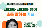 (데일리대구경북뉴스=김형만 기자)의성군(군수 김주수)은 9월 11일 의성군 청소년문화의집 공연장에서 가족소통전문가 이호선 교수를 초청해 ‘세대와 세대를 넘어 소통 잘하는 기술’ 북콘서트를 개최한다. 이호선 교수는 숭실사이버대학교 기독교상담복지학과 교수로 재직 중이며, ‘JTBC 이혼숙려캠프: 새로고침’ 등 다양한 방송에서 심리상담 전문가로 활발히 활동하고 있다. 이번 강연에서는 가족과 사회 내 세대 간 공감과 이해를 바탕으로 마음을 열고 소통할 수 있는 대화법을 전할 예정이다. 김주수 의성군수는 “이번 강연을 통해 세대 간 벽을 허물고 서로를 이해하는 소통이 이루어지기를 기대한다”며, “앞으로도 의성군립도서관이 모든 세대가 함께 성장하는 공간이 되도록 노력하겠다”고 말했다. 한편, 2025 ‘의성군민 함께읽기: 작가를 만나다」’는 다섯 번째 이호선 북콘서트에 이어 △10.16. 정우철 ‘내 인생을 바꾼 명화 한 점’ △11.27. 이준영‘2026 트렌드 코리아’까지 다채로운 강연으로 이어질 예정이다. 참가 신청은 도서관 방문 및 전화, 의성군 통합예약서비스(usc.go.kr/reserve)를 통하여 접수할 수 있으며 기타 문의 사항은 전화로 문의하면 된다.