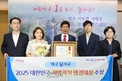 (데일리대구경북뉴스=이준호 기자) 대구 달서구(구청장 이태훈)가 지난 25일 국회도서관 대강당에서 열린 ‘2025 대한민국 지방자치 행정대상’을 수상했다고 29일 밝혔다. 민선 8기 이후 공약 이행, 투명·청렴, 지역 특성화 정책 등 전 분야에서 거둔 정량·정성 성과가 종합적으로 인정받은 결과다. 이번 시상은 대한민국의정대상·지방자치행정대상 조직위원회가 주관하며, 전국 지자체를 대상으로 공약 이행 수준, 투명성·청렴성, 지역 특화 시책 등을 다각도로 평가해 우수 자치단체를 선정한다. 달서구는 민선 8기 6대 분야 59개 공약사업을 체계적으로 추진해 주민 체감 성과를 창출했고, 구민평가단 운영과 홈페이지 공개 등 열린 행정으로 한국매니페스토실천본부 주관 ‘전국기초단체장 공약이행평가’ 2년 연속 최고등급(SA)을 기록했다. 달서구는 대구·경북 기초단체 최초로 국토교통부 ‘스마트도시 인증’ 및 재인증을 획득했으며, 기후위기 대응 노력으로 대구 최초 ‘그린시티’ 선정을 달성했다. 이태훈 달서구청장은 “민선 8기를 포함해 지난 9년간 54만 구민과 1천여 공직자가 함께 만든 성과”라며, “앞으로도 투명하고 책임 있는 행정으로 주민 신뢰에 보답하고, 지방시대에 경쟁력