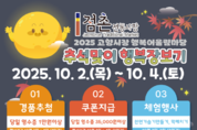 (데일리대구경북뉴스=황지현 기자)존경하는 군민 여러분, 그리고 출향인 여러분! 풍요로운 결실의 계절, 한가위를 맞아 가정마다 건강과 행복이 함께하시기를 기원합니다. 올 한 해도 군민 여러분의 관심과 참여, 출향인 여러분의 성원으로 예천은 쉼 없이 나아가고 있습니다. 깊은 감사의 말씀을 드립니다. 우리 예천군은 지금 더 큰 도약을 준비하고 있습니다. 도청신도시의 조속한 완성과 생활편의시설 확충으로 정주여건을 높이고, 전국 최고 수준의 교육환경을 조성해 아이 키우기 좋은 도시를 만들겠습니다. 또한 디지털농업 혁신타운으로 농업의 대전환을 추진하고 예천한우특화센터를 건립하여 예천한우의 경쟁력을 강화하는 한편, 곧 준공될 대한육상연맹 교육훈련센터와 양궁 인프라를 중심으로 스포츠마케팅을 활성화하고 남산공원 야간경관 조성을 비롯해 예천읍 원도심과 신도시를 연계한 문화・관광 권역을 확장해 생활인구 1천만 명 시대를 앞당기겠습니다. 다가오는 추석 연휴에는 가족・친지와 함께 풍성한 웃음과 따뜻한 정을 나누시길 바랍니다. 예천군도 군민 여러분의 행복과 지역 발전을 위해 더욱 정진하겠습니다. 아울러, 추석 연휴인 10월 4일부터 6일까지 경상북도 지정축제인 ‘삼강주막 나루터 축제