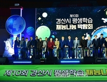 (데일리대구경북뉴스=황지현 기자)경산시(시장 조현일)는 10월 31일부터 11월 1일까지 이틀 동안 경산 실내 체육관에서‘배움의 별, 10번째 우주를 열다’를 주제로 시민이 함께 배우고 나누는 ‘제10회 경산시 평생학습 재능 나눔 박람회’를 성황리에 개최했다. 이날 개막식 식전 공연으로 무대에 오른 ‘경산시 하모니 투게더’는 장애인과 비장애인이 함께 호흡하며 음악으로 하나 되는 순간을 만들어냈다. 서로의 다름을 이해하고 조화를 이뤄가는 그들의 공연은 관객들에게 따뜻한 울림과 포용의 메시지를 전하며 큰 박수를 받았다. 이번 박람회에서는 130여 개의 홍보·체험 부스와 작품 전시, 스탬프 투어, 시민 참여형 퀴즈 프로그램인 ‘별빛학습벨’, 그리고 축하공연과 토크콘서트 등 다양한 프로그램이 운영돼 시민들의 뜨거운 호응을 얻었다. 이 중에서도 관람객들의 큰 관심을 끈 슐런 체험활동은 어르신과 장애인이 함께 즐길 수 있는 평생 학습형 스포츠로, 세대 간 소통과 참여를 이끄는 의미 있는 체험으로 진행됐다. 또한 체험자의 점수에 따라 행운권 추첨 이벤트가 열려 현장을 찾은 시민들에게 색다른 즐거움을 선사했다. 조현일 경산시장은 “장애인과 비장애인이라는 단어가 더 이상 필