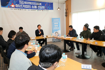 (데일리대구경북뉴스=황지현 기자)안동시는 10월 30일 ‘바퀴 달린 시장실’의 일환으로 풍산읍 경북바이오일반산업단지 내 명인안동소주 회의실에서 (사)중소기업청년융합회 회원들과 간담회를 갖고, 기업 운영 과정에서 겪는 어려움과 정책 개선 의견을 청취했다. 이번 간담회는 지역 청년기업의 성장 지원과 지속 가능한 기업 환경 조성을 위한 자리로 마련됐으며, 권기창 안동시장을 비롯해 중소기업청년융합회 회원 20명이 참석해 현장 중심의 구체적인 논의를 이어갔다. 이날 기업인들은 △청년기업의 해외수출 확대를 위한 적극적인 지원 △안동바이오생명 국가산업단지 후보지 선정 이후 추진 단계별 진행 현황에 대한 설명 요청 △대마(헴프)산업의 차별화 전략 마련 △댐 주변 관광 인프라를 활용한 중소기업 제품 판로 확대 등 지역기업의 경쟁력 강화를 위한 다양한 정책을 건의했다. 한편, (사)중소기업청년융합회(회장 김준영)는 지역에서 기업을 운영하는 50세 이하 청년기업 대표 90여 명으로 구성된 경제 네트워크 단체로, 지역 중소기업 경쟁력 강화, 상생 협력 확대, 지역경제 활성화를 목표로 활발히 활동하고 있다. 권기창 안동시장은 “지역 경제의 지속 가능한 성장은 혁신과 도전 정신을 가