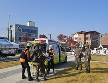 (데일리대구경북뉴스=신명곤 기자)성주군은 2025년 경북지역 충무훈련 기간 중 전시 오폭 피해로 인해 전재민이 발생한 상황을 가정한 구호 훈련을 11월 5일 오후 2시 성주읍 별의별 문화마당에서 실시했다. ‘충무훈련’은 행정안전부 주관하에 매년 권역별로 시행되는 민관군경 합동 훈련으로 ▲ 전시 상황조치 연습 ▲ 자원동원 훈련 ▲ 실제훈련 등이 있는데 이번 경북지역 충무훈련에서 성주군은 상주시와 함께 실제 훈련을 실시했다. 이날 훈련에는 성주경찰서, 성주소방서, 예비군지역대, 시각장애인 생활지원센터 등 유관기관 및 민간단체 약 100여 명의 인원과 12여 점의 장비가 동원됐으며, 전시 대응 계획 중 양곡 배급 및 긴급 채혈을 수행하며 대응체계를 점검하고 절차를 숙달했다. 성주군 관계자는 “군은 사드 기지가 있는 국가안보의 핵심 지역으로서, 군민의 생명과 안전을 보호하기 위한 철저한 대비가 필요하다”며 “이번 훈련을 계기로 유관기관과의 협력체계를 공고히 해 국가 비상사태 발생 시 신속정확하게 대응할 수 있도록 최선을 다하겠다”고 밝혔다.