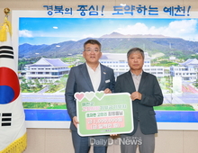 (데일리대구경북뉴스=황지현 기자)예천군 효자면 고항리 출신 최병동 씨의 가족들이 10월 2일, 예천군청을 찾아 고향사랑기부금에 100만 원을 기탁했다. 타지에서 생활하고 있는 자녀가 아버지가 계신 고향을 위해 따뜻한 마음을 모아 이뤄진 이번 기부는, 민족 대명절 추석을 맞아 그 의미가 더욱 뜻깊다. 최병동 씨는 백석리에서 사과농사를 지으며 성실한 땀으로 결실을 맺고 있는 농업인으로, 평소 지역사회와 함께 나누고자 하는 마음이 남다른 것으로 알려져 있다. 최병동 씨는 “고향에서 사는 것이 늘 자랑스럽고, 장성한 아이들이 뜻을 모아 나의 고향에 기부해주어 뿌듯하다”며, “이번 기부가 예천군 발전에 도움이 되기를 바란다”고 말했다. 김학동 예천군수는 “추석을 맞아 가족의 정과 고향의 따뜻함을 함께 나눠주셔서 깊이 감사드린다”며, “밝고 따뜻한 한가위가 되시기를 기원한다”고 말했다.