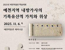 (데일리대구경북뉴스=황지현 기자)예천군(군수 김학동) 예천박물관은 11월 6일 오후 2시, ‘예천지역 내방가사의 기록유산적 가치와 위상’이란 주제로 학술대회를 개최할 예정이다. 내방가사는 가부장제 사회 속에서 여성들의 사회적 인식을 그대로 드러낸 문학 장르이자 한글을 사용하여 생각과 삶을 주체적으로 표현한 여성 집단 활동의 결과물로, 지난해 국립한글박물관, 한국국학진흥원, 예천박물관, 상주박물관, 김해한글박물관, 국립중앙도서관, 경북대학교 중앙도서관, 단국대학교 율곡도서관, 한국가사문학관 등 9개 기관이 공동으로 세계기록유산에 등재 신청한 문화유산이다. 이번 학술대회에서는 여덟 명의 연구진이 ‘경북 북부지역 여성의 문자 생활과 국어사적 의의’, ‘내용으로 살펴본 예천지역 내방가사의 현황 분석’, ‘예천지역 내방가사의 언어문화적 특징’, ‘예천지역 내방가사의 특징과 기록유산적 가치’를 주제로 열띤 발표와 토론을 이어갈 예정이다. 김학동 군수는 “이번 학술대회는 예천지역 내방가사의 문화유산적 가치를 새롭게 재조명하고, 유네스코 세계기록유산 등재를 위한 기초자료로 활용하는 데 목적이 있으며, 예천지역의 브랜드와 정체성 함양을 위한 계기가 될 것”이라고 말했다. 한