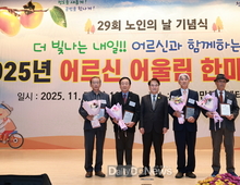 (데일리대구경북뉴스=황지현 기자)청도군(군수 김하수)은 11월 7일 국민체육센터 실내체육관에서 제29회 노인의 날 기념 ‘2025 어르신 어울림 한마당 큰잔치’를 성황리에 개최했다. 행사에는 김하수 청도군수, 박성곤 부의장, 대한노인회 청도군지회 백수환 회장, 각 경로당 회장 및 총무, 노인회 임원, 유공 어르신, 각계 내빈 등 800여 명이 참석해 청도의 어르신들을 향한 존경과 감사의 마음을 함께 나누는 뜻깊은 시간을 가졌다. 행사는 ‘페도라 솔리스트 앙상블’의 식전공연으로 막을 올렸으며, 청아한 목소리가 체육관을 가득 채우며 어르신들의 얼굴에는 환한 미소가 번졌다. 이어 열린 1부 기념식에서는 개식 선언으로 ▲내빈소개 ▲국민의례 ▲노인강령 낭독이 진행되어 노인의 날의 의미를 되새겼다. 특히 지역사회 발전에 헌신해 온 어르신들께 대한노인회 중앙회장상, 도연합회장상, 군지회장상, 군수표창 등 총 38명의 유공자 표창이 수여됐으며, 어르신들의 노인복지활성화를 위해 노인복지기금 기탁식도 함께 진행되어 현장을 더욱 따뜻하게 했다. 이어 김하수 청도군수를 비롯해 주요 인사들이 잇따라 축사를 전하며 어르신들의 건강과 행복을 기원했다. 2부에서는 축하공연이 이어지며 세