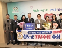 (데일리대구경북뉴스=황지현 기자)청도군(군수 김하수)은 경북도에서 실시한 2025년 시군 농정평가에서 최우수기관으로 선정돼 11월 11일 경북여성가족플라자 대강당에서 열린 제30회 농업인의 날 행사에서 도지사 기관표창을 받았다. 경북도 농정평가는 22개 시·군을 대상으로 한 해 동안의 ▲농업정책▲농식품유통▲스마트농업혁신▲축산정책▲동물방역▲특수시책 등 농정업무 전반을 종합적으로 평가하는 것이다. 청도군은 이번 평가에서 ‘청도형 농업대전환 프로젝트’ 추진 성과와 스마트농업 기반 확충, 농식품 수출 확대, 지역 특화시책 발굴 등 전 부문에서 우수한 평가를 받았다. 특히 청도군은 ‘농업대전환’의 체계적 추진으로 지역 농정 혁신을 선도했다. 전담 TF 운영과 중장기 전략 수립을 통해 추진기반을 강화하고, 언론홍보와 발대식으로 대외 인지도를 높였다. 또한 농업인 의식전환 교육과 시범단지 운영으로 현장 중심의 변화를 이끌었으며, 청도반시 비상품자원화센터 운영과 납작복숭아 브랜드화 추진 등 지역 특화농업 발전에도 뚜렷한 성과를 거두었다. 김하수 청도군수는 “6년 연속 수상은 청도군의 농정정책이 현장에서 실질적인 성과를 거두고 있음을 보여주는 결과”라며, “앞으로도 농업대전