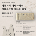 (데일리대구경북뉴스=황지현 기자)예천군(군수 김학동) 예천박물관은 11월 6일 오후 2시, ‘예천지역 내방가사의 기록유산적 가치와 위상’이란 주제로 학술대회를 개최할 예정이다. 내방가사는 가부장제 사회 속에서 여성들의 사회적 인식을 그대로 드러낸 문학 장르이자 한글을 사용하여 생각과 삶을 주체적으로 표현한 여성 집단 활동의 결과물로, 지난해 국립한글박물관, 한국국학진흥원, 예천박물관, 상주박물관, 김해한글박물관, 국립중앙도서관, 경북대학교 중앙도서관, 단국대학교 율곡도서관, 한국가사문학관 등 9개 기관이 공동으로 세계기록유산에 등재 신청한 문화유산이다. 이번 학술대회에서는 여덟 명의 연구진이 ‘경북 북부지역 여성의 문자 생활과 국어사적 의의’, ‘내용으로 살펴본 예천지역 내방가사의 현황 분석’, ‘예천지역 내방가사의 언어문화적 특징’, ‘예천지역 내방가사의 특징과 기록유산적 가치’를 주제로 열띤 발표와 토론을 이어갈 예정이다. 김학동 군수는 “이번 학술대회는 예천지역 내방가사의 문화유산적 가치를 새롭게 재조명하고, 유네스코 세계기록유산 등재를 위한 기초자료로 활용하는 데 목적이 있으며, 예천지역의 브랜드와 정체성 함양을 위한 계기가 될 것”이라고 말했다. 한