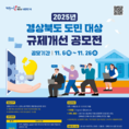 (데일리대구경북뉴스=김형만 기자)경상북도는 ‘2025년 경상북도 도민 대상 규제개선 공모전’을 개최한다. 이번 공모전은 도민이 체감하는 불편한 제도나 절차, 지나치게 복잡한 인허가 절차에 대해 도민의 목소리를 직접 듣고 이를 제도개선에 반영하는 것에 목적이 있다. 이번 공모전은 경상북도에 거주하거나 경상북도에 있는 직장인·학생 등이라면 누구나 참여할 수 있다. 다만, 공무원의 경우 별도의 규제혁신 아이디어 공모전을 시행함에 따라 제외된다. 공모 분야는 지역산업육성, 보조금 지원, 투자유치 촉진 등 민생과 밀접한 민생 규제와 기업·소상공인 등에게 과도한 기준을 해석·적용하는 그림자 규제, 법령에서 규정하고 있지 않더라도 행정절차 지연 처리 등을 해결할 수 있는 통합심의로 구성되어 있으며, 그밖에 도민 생활 전반에 대한 규제 개선 사항도 제출할 수 있다. 공모전 참여를 원하는 경우 6일부터 26일까지 공모전 신청서와 개인정보 수집 및 이용 동의서를 담당자 전자메일 혹은 우편으로 제출하면 된다. 수상자에게는 경상북도지사 상장이 수여되며, 총상금은 500만원으로대상(100만원), 최우수(각70만원, 2명), 우수(각40만원, 4명), 장려(각20만원, 5명)으로 총