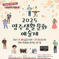 (데일리대구경북뉴스=양승미 기자)=영주시는 오는 9월 26일(금)부터 27일(토)까지 영주시민회관 공연장과 전시실에서 「2025 영주생활문화예술제」를 개최한다고 밝혔다. 경상북도와 영주시가 공동으로 추진하고 (사)한국예총 영주지회(회장 김진동)가 주관하는 이번 축제는 지역 생활문화예술 동아리와 시민이 함께 어우러지는 자리다. 공연·전시·체험·프리마켓 등 다양한 프로그램으로 영주를 대표하는 생활문화예술 한마당으로 성장하고 있다. 개막일인 26일 오후 7시에는 지역가수 서연화 씨와 남성 성악 콰르텟 ‘디아만테’의 식전 공연에 이어 개막식이 진행된다. 이후 오카리나·대금단소·색소폰·밴드 등 9개 동아리 공연과 K-POP 그룹 ‘앵두걸스&려화’가 무대에 올라 시민들과 호흡한다. 27일 오후 6시 30분에는 전자 색소폰 앙상블 ‘B.E.S 콰르텟’, 댄스팀 ‘레벨업’, 치어리딩팀 ‘글로리’ 등 10개 지역 동아리 공연이 이어지고, 초청가수 ‘더 블러프(The Bluff)’가 출연해 풍성한 무대를 선사할 예정이다. 전시·체험·프리마켓은 양일간 오후 3시부터 9시까지 운영된다. 규방공예 ‘바늘이야기’, 김애화 자수연구실, 영주영상회, 퀼트 해랑 등 지역 동아리가