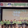 (데일리대구경북뉴스=김형만 기자)경상북도는 10월 17일 칠곡군 교육문화회관 대공연장에서 김학홍 경상북도 행정부지사, 배진석 경상북도의회 부의장, 박종태 칠곡부군수, 김찬수 (사)자연보호중앙연맹 경상북도협의회장과 22개 시군 자연보호협의회 회원 850여 명 등이 참석한 가운데 제47주년 자연보호헌장 선포 기념식을 가졌다. 자연보호헌장 기념식은, 1970년대 급격한 산업 발달로 오염된 자연을 지키고 가꾸기 위해 정부에서 1978년 10월 5일 자연보호헌장을 선포한 것을 기념하고 그 정신을 되새기며 도민의 환경윤리에 대한 올바른 가치관 인식 제고와 자연보호 참여를 활성화하기 위해 매년 개최되고 있다. 이날 행사는 경북도 및 22개 시군 자연보호협의회의 자연보호 기 입장을 시작으로, 자연보호헌장과 자연보호실천결의문 낭독, 유공자 표창, 환영사, 기념사, 축사, 퍼포먼스 순으로 진행됐다. 자연보호협의회 회원들은 자연보호헌장과 자연보호실천결의문을 통해 자연환경의 중요성과 보전의 필요성을 알리고 자연훼손과 환경오염을 최소화하기 위한 환경지킴이의 역할에 최선을 다할 것을 다짐했다. 이어서 환경보전 활동에 헌신하고 깨끗한 경북 만들기를 실천한 유공자들에게 환경부장관, 경상