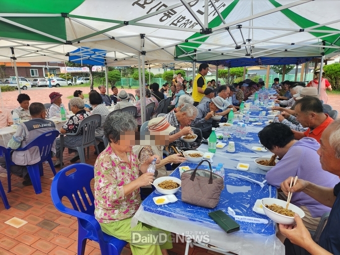 (데일리대구경북뉴스=신명곤 기자)성주인터넷신문사(대표 김진수)는 9월 13일 성주군 가천면 복지회관 광장에서 지역의 어르신과 지역주민 등 300여명을 대상으로‘사랑의 짜장면 나눔’봉사를 실시했다.