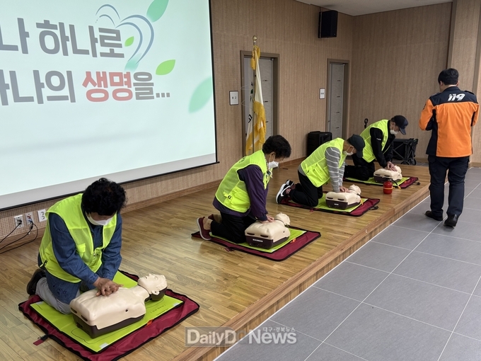 이날 교육은 고령 소방서 예방안전과의 협조를 통해 진행됐으며, ▲올바른 소화기 사용법 및 신속한 119신고 요령 ▲심폐소생술 중요성 및 실습 ▲위급상황 대응방법 등을 통해 노인일자리 활동 중 발생할 수 있는 다양한 상황에 적절히 대처할 수 있는 역량을 기를 수 있는 교육으로 구성했다.