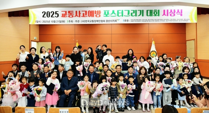 (데일리대구경북뉴스=황지현 기자)사)한국교통장애인협회 경산시지회(회장 송화자)는 10월 21일 삼성현역사문화관에서 조현일 경산시장, 입상자와 가족 등 150여 명이 함께한 가운데 ‘2025년 교통사고 예방 포스터 그리기 대회 시상식’을 개최했다.