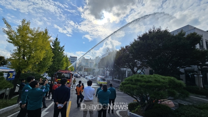 (데일리대구경북뉴스=황지현 기자)김천시(시장 배낙호)는 10월 23일 오후 2시, 청사 화재에 대응하기 위해 대광119안전센터와 합동 소방 훈련을 시행했다.
