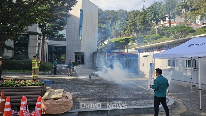 이번 훈련은 전산장비로 인한 화재 발생 상황을 가정하고, 전기화재에 대응할 수 있는 가스식 소화기를 사용하여 화재 발생 초기 단계에서 신속하게 진압하는 능력을 향상하는 데 초점을 맞춰 진행됐다.