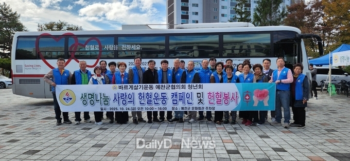 (데일리대구경북뉴스=황지현 기자)바르게살기운동 예천군청년회(회장 권용갑)는 10월 24일 오전 10시부터 문화회관 전정에서 사랑의헌혈운동 캠페인 및 헌혈봉사활동을 전개했다.