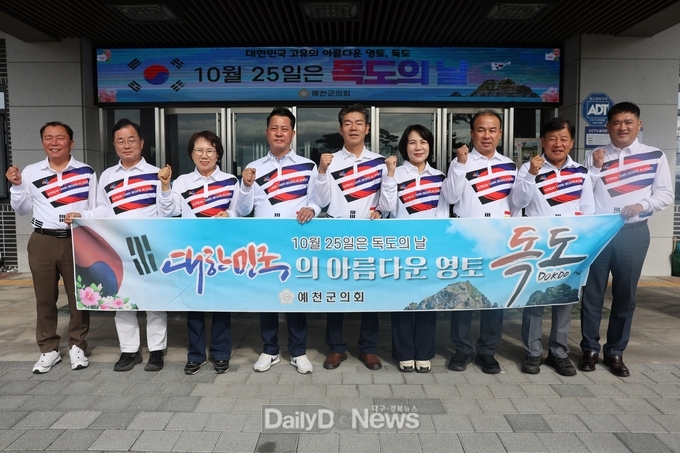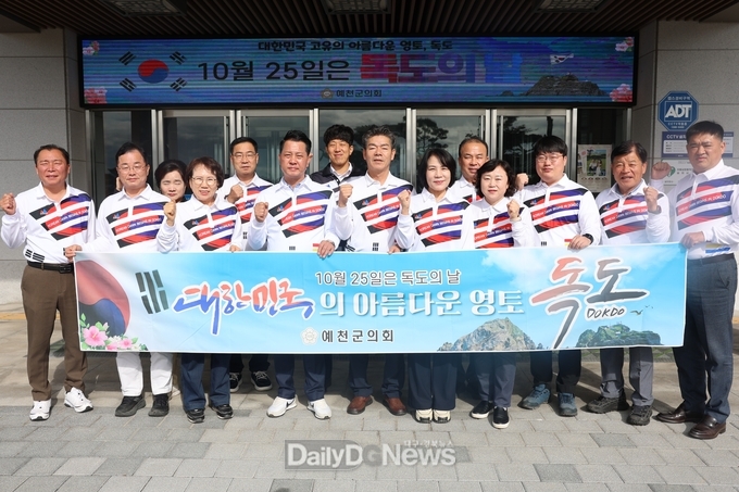 (데일리대구경북뉴스=황지현 기자)예천군의회(의장 강영구)는 10월 24일, 독도의 날을 맞아 군의회 전정에서 의원과 의회사무과 직원이 참가한 가운데 독도사랑 캠페인을 가졌다.