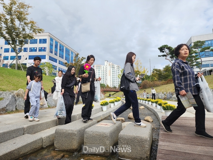 행사는 패밀리파크 잔디광장을 출발해 범우리공원과 실개천을 거쳐 다시 출발지로 돌아오는 약 3.5km 코스로 진행됐으며, 참가자들은 코스 곳곳에 설치된 댄스존·비누방울존·보물찾기존 등 이벤트 구간에서 다양한 체험을 즐기며 가을 산책을 만끽했다.